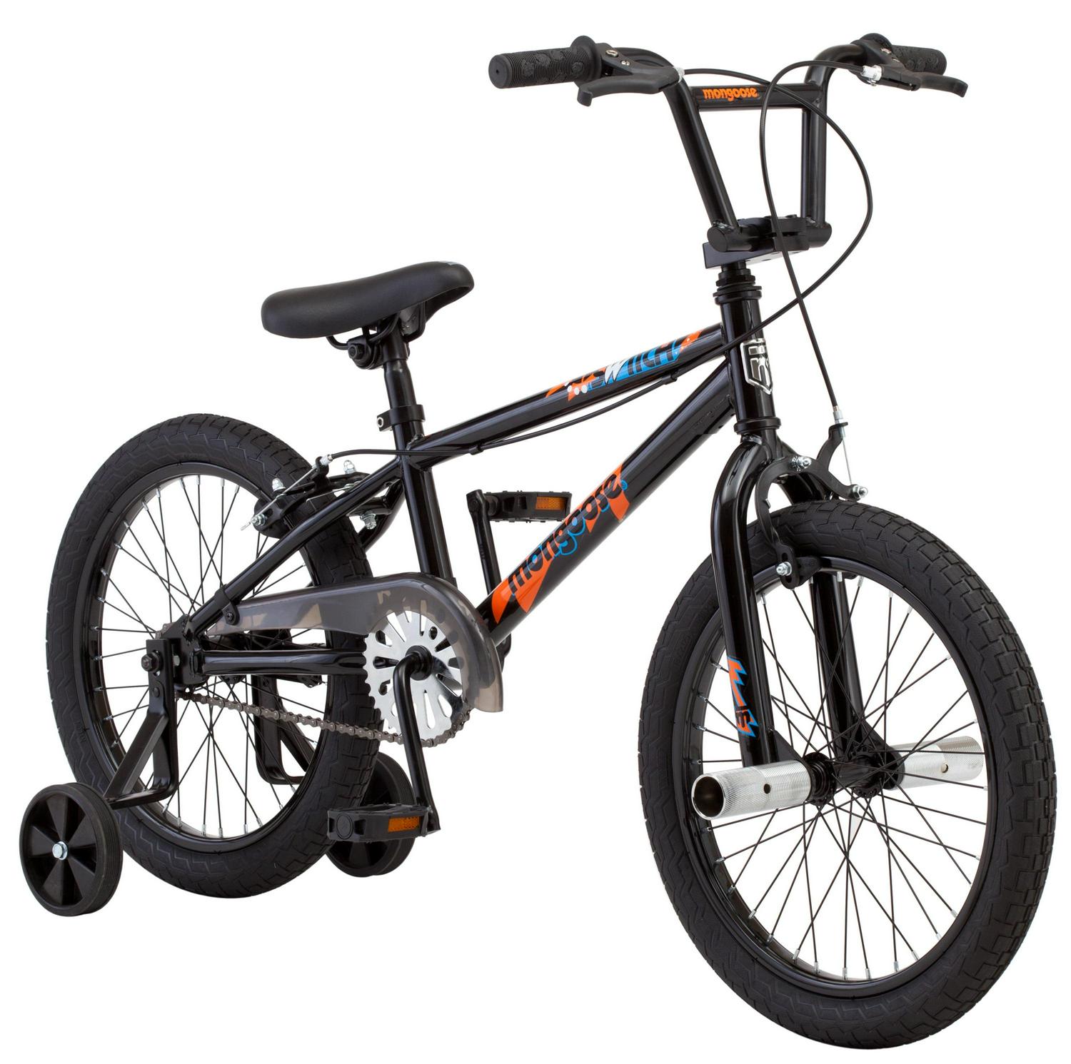 Mongoose Switch Kids Bike with Training Wheels. 18 Inch Wheels. Ages 5-9. Black