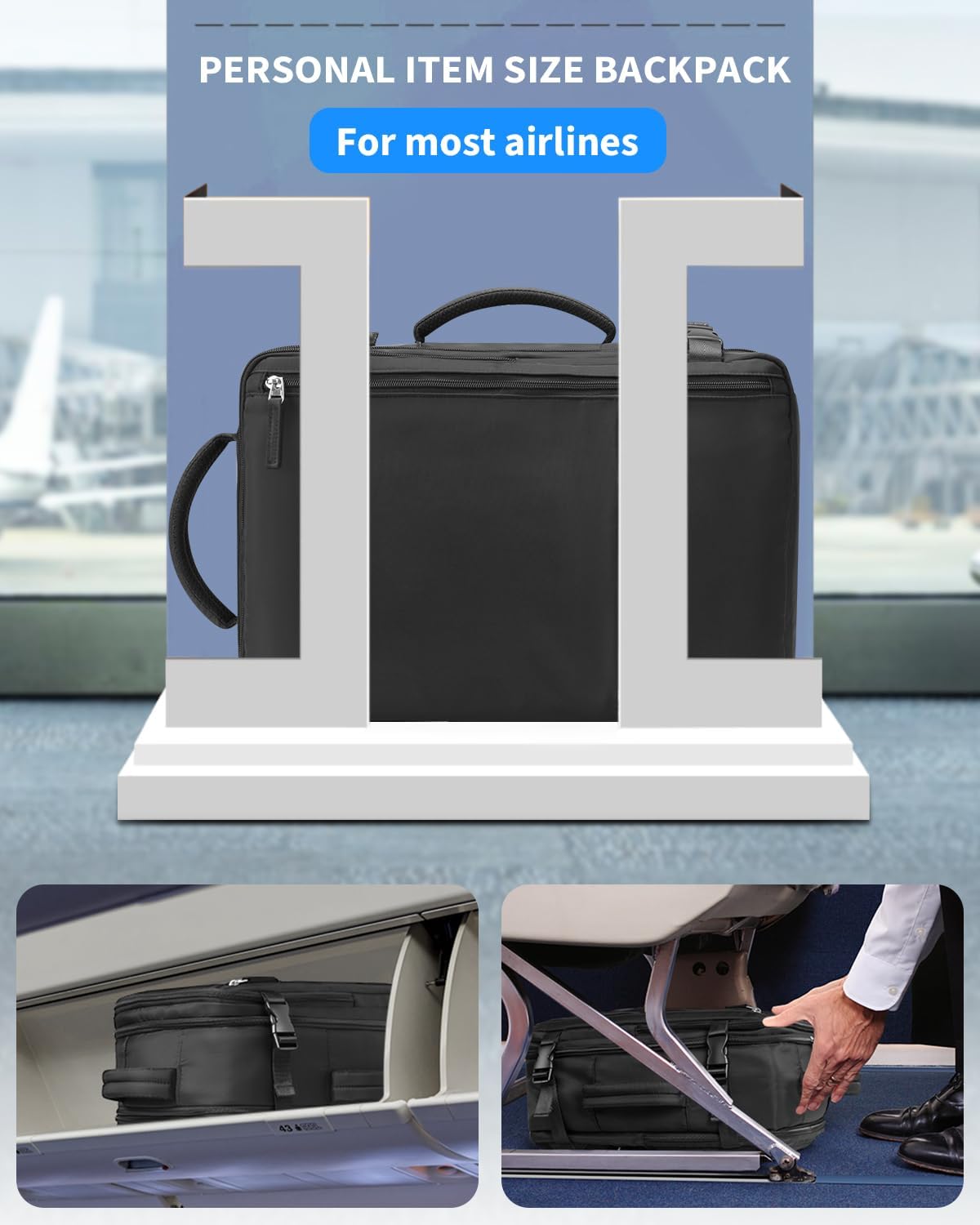 - 【Flight Approved】 Travel backpacks meets the requirement for personal item size for most airline companies includes Southwest, Spirit, JetBlue, United, Frontier Airlines and more, so you can put it under your seat or overhead bin to save extra money. This carry on backpack can be open to 180 degrees like a suitcase, which will help you get through airport security quickly