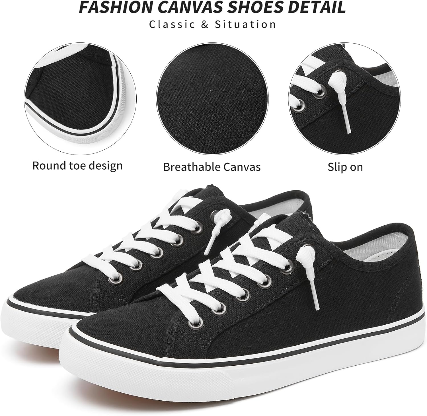 - 【Lace up&Slip on Design】You can adjust the LACES to make them fit your feet better and add comfort. If you feel the slip on canvas shoes are too loose, tie the LACES down. If the canvas shoes are too tight, tie them up.