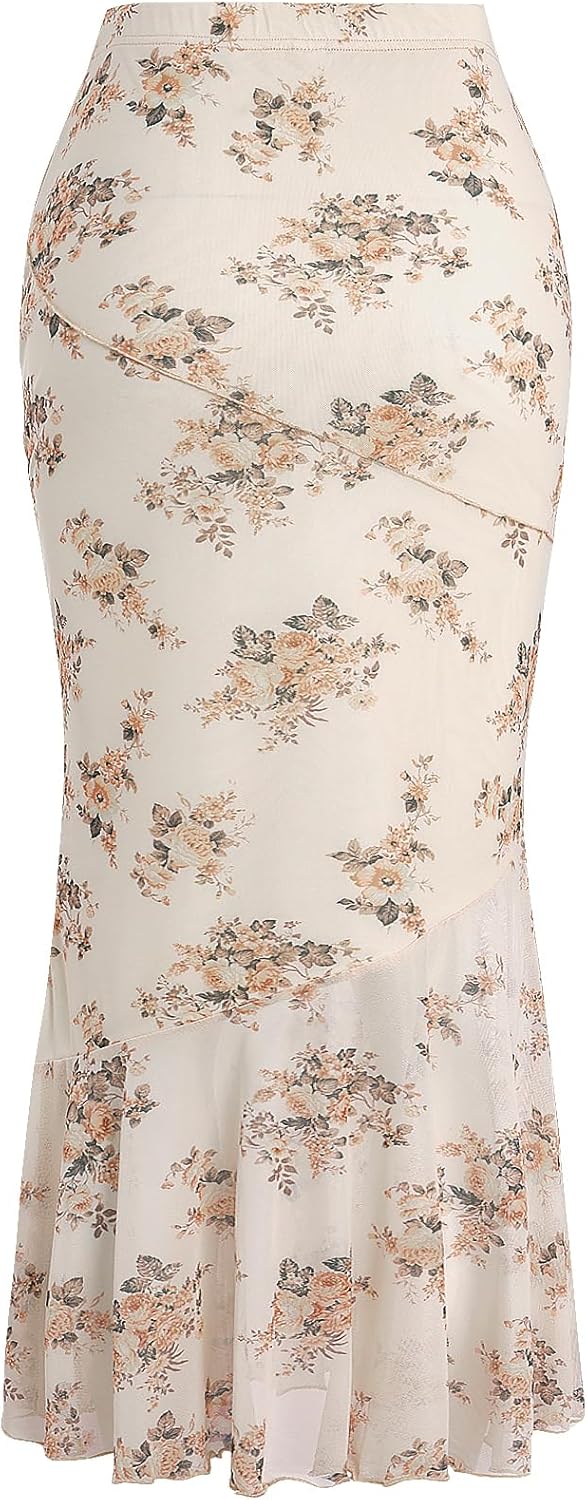 - High Waist, Fishtail Hem, Lettuce Trim, Floral Pattern, Bodycon Skirt, Boho Beach Skirt